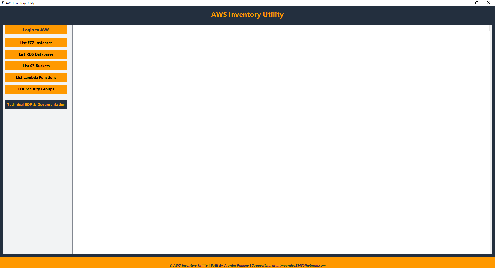 © AWS Inventory Utility | Built By Arunim Pandey | All rights reserved